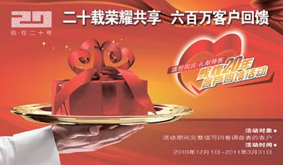 日前,太平洋壽險營銷渠道為迎接司慶20周年,提前部署2011年“開門紅”業(yè)務(wù)競賽活動,推出“太保輝煌20年”系列活動。作為首項(xiàng)活動,全司范圍的“太保輝煌20年?客戶回饋”活動即將在今年12月拉開帷幕。