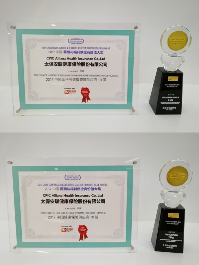 11月22日,太保安聯(lián)健康險在2017中國薪酬與福利年會中榮獲“2017中國健康保險供應(yīng)商十強(qiáng)”及“2017中國體檢與健康管理供應(yīng)商十強(qiáng)”兩項大獎。
