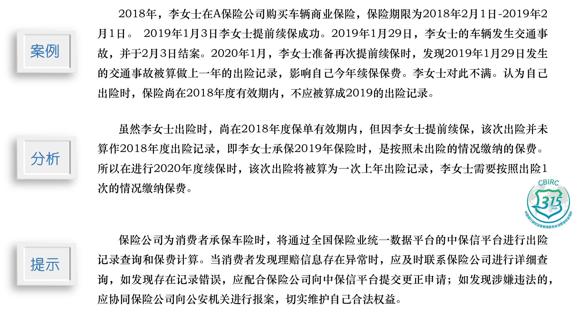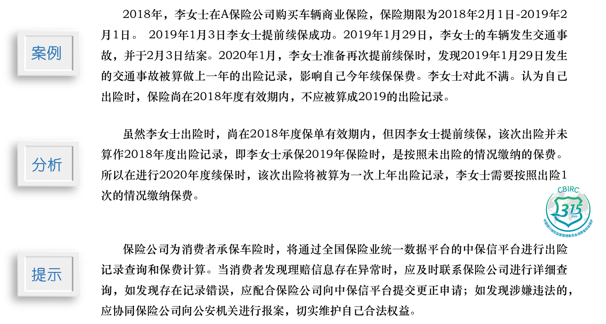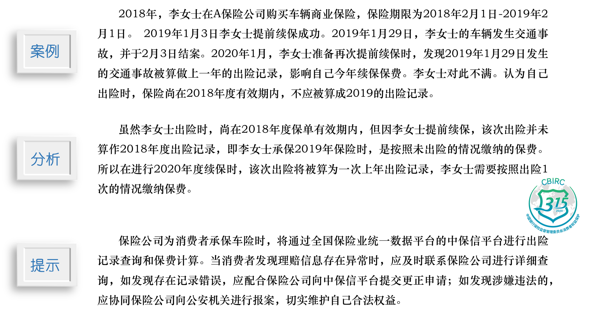 3·15|以案說險(xiǎn):提前續(xù)保后再出險(xiǎn)的次數(shù)會(huì)影響哪一年承保保費(fèi)計(jì)算