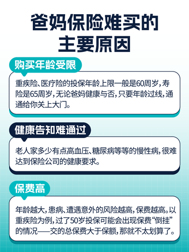 很多朋友都有這樣的經歷: 想給50歲以上的爸媽買保險,又難又貴!