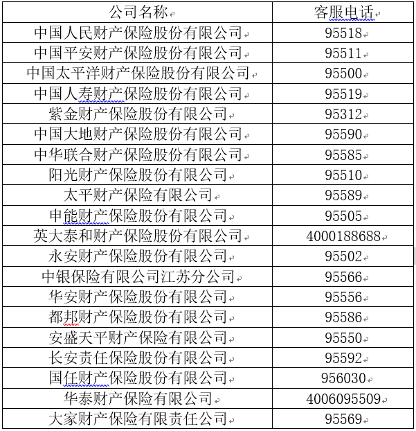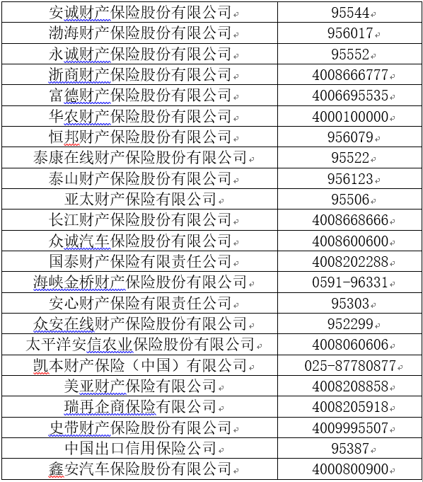 各財產(chǎn)保險公司客戶服務(wù)電話