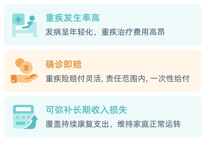 持續(xù)康復(fù)支出 :營養(yǎng)費(fèi)、理療費(fèi)、定期復(fù)查等,都是無底洞。重疾險(xiǎn)可以直接賠你一大筆錢,讓你安心養(yǎng)病,不用擔(dān)心房貸、車貸和孩子學(xué)費(fèi)。