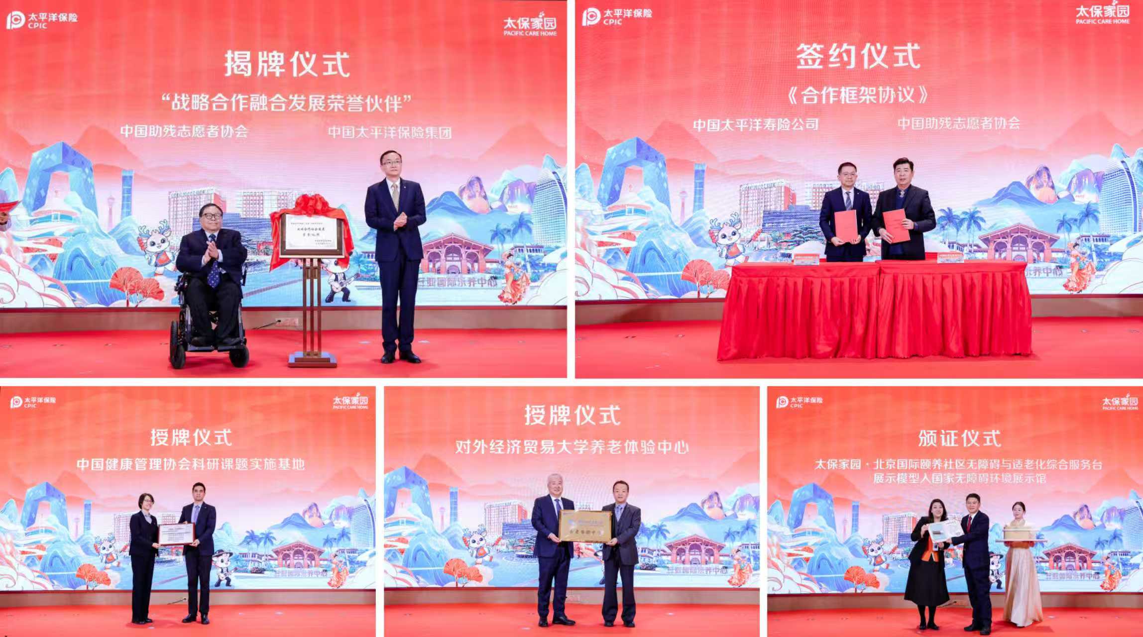 開業(yè)活動現場,北京、三亞兩大會場還舉辦了與多個合作伙伴的簽約授牌儀式,政企校社攜手發(fā)力,為太保家園養(yǎng)老生態(tài)建設注入強勁合力。