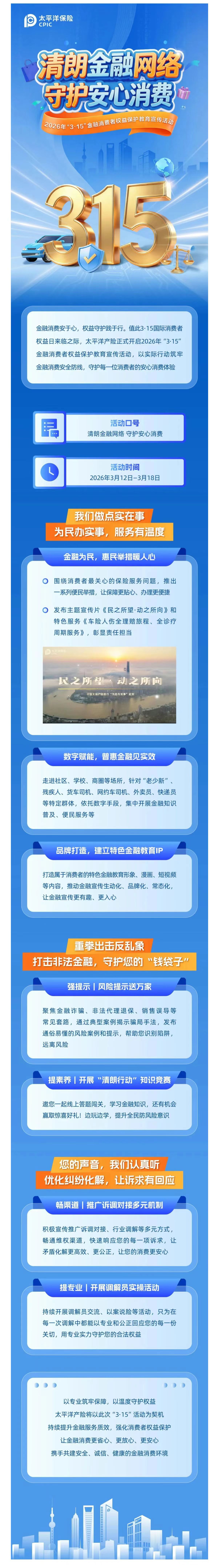 【保險知識】太平洋產險啟動2026年“3·15”金融消費者權益保護教育宣傳活動