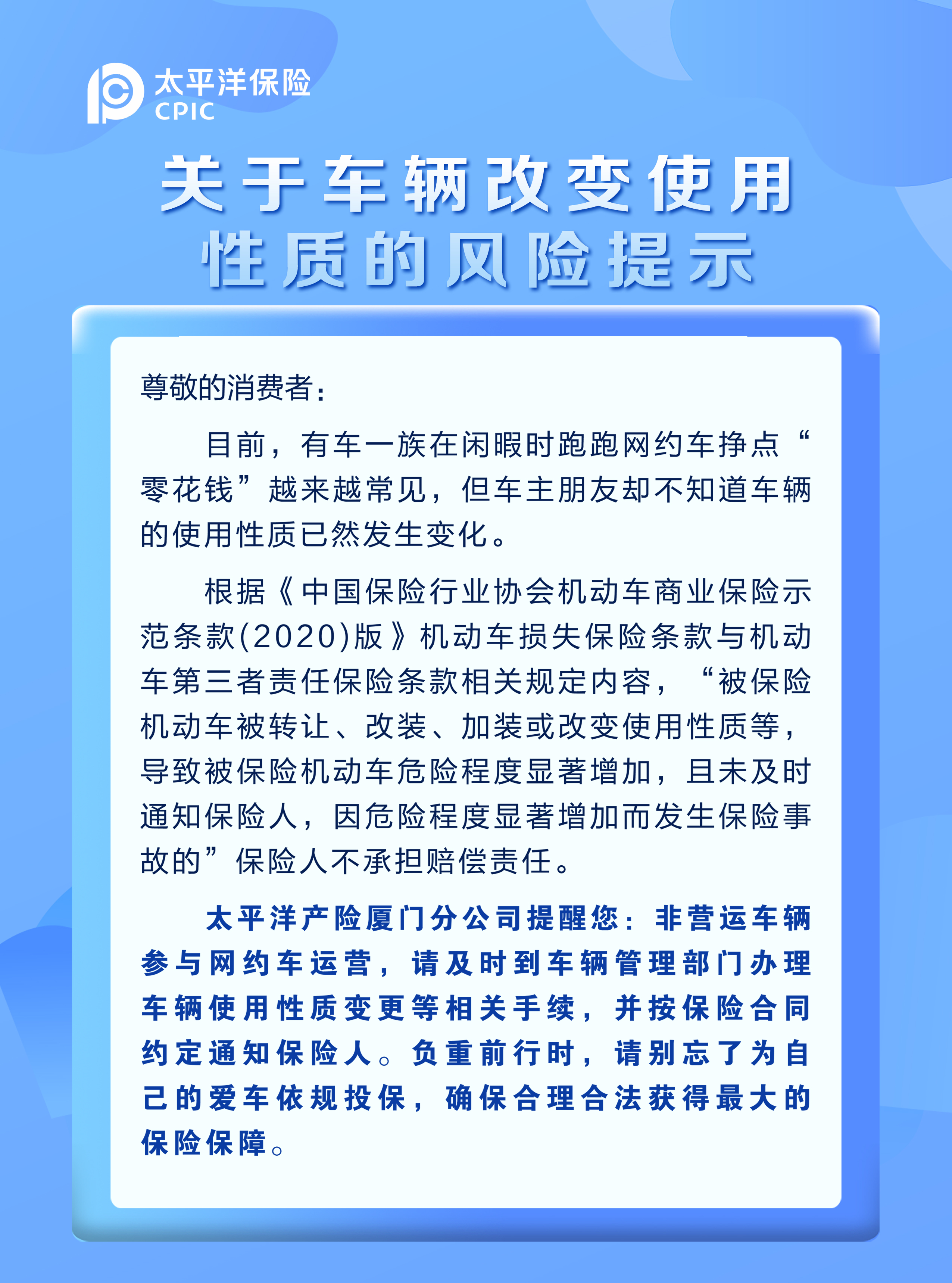 關(guān)于車輛改變使用性質(zhì)的風(fēng)險(xiǎn)提示
