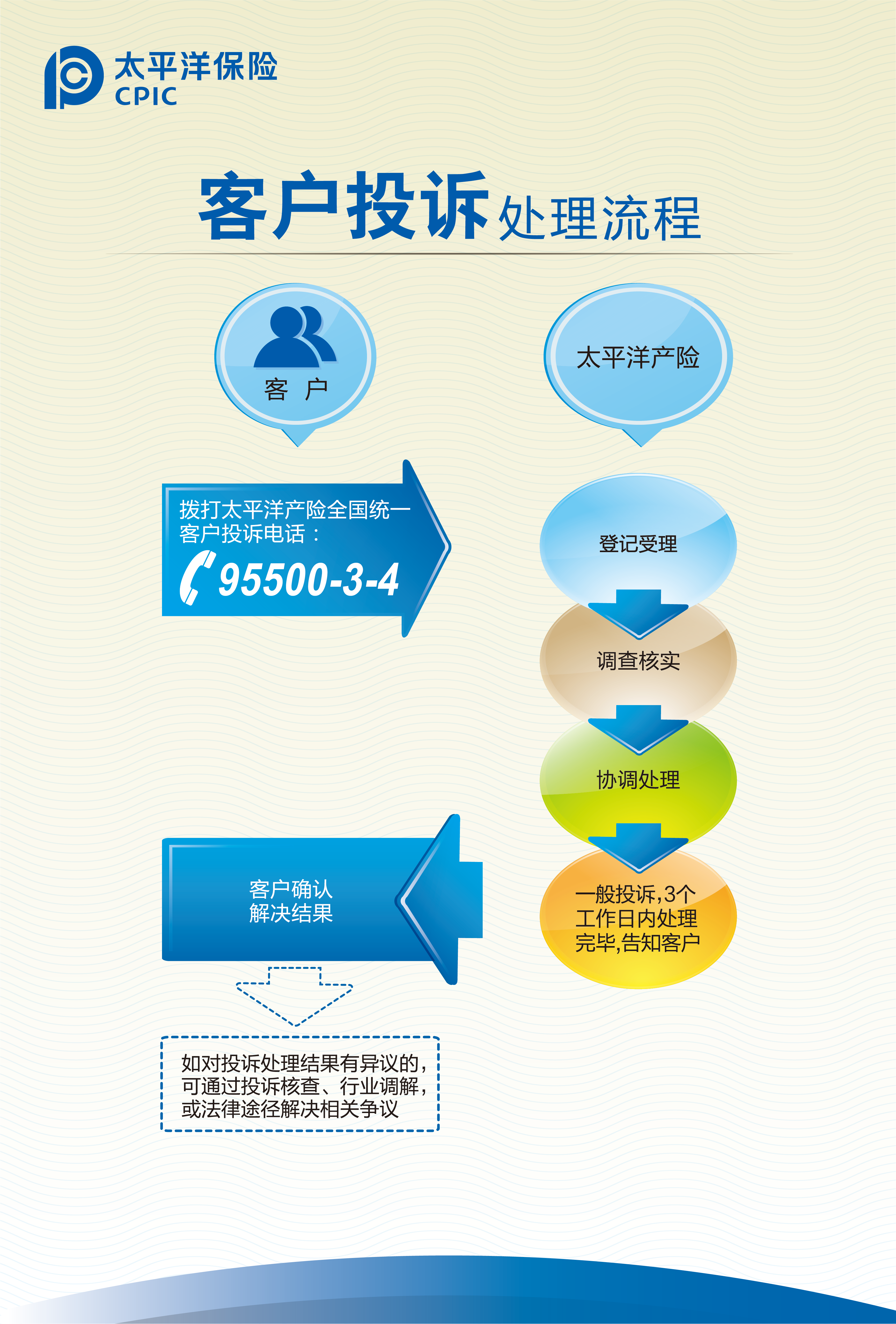 1.太平洋產(chǎn)險全國統(tǒng)一客戶投訴電話:95500語音提示或按#號鍵-3-2-4